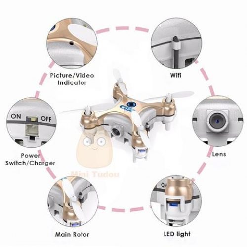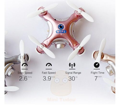 This mini camera drone quadrocopter fits in the palm of your hands and can fly for up to 6 minutes. Control it from your smartphone for hours of fun.